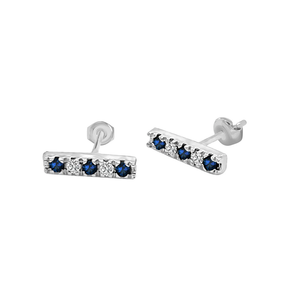 14K Gold Blue Sapphire & Diamond Bar Earrings