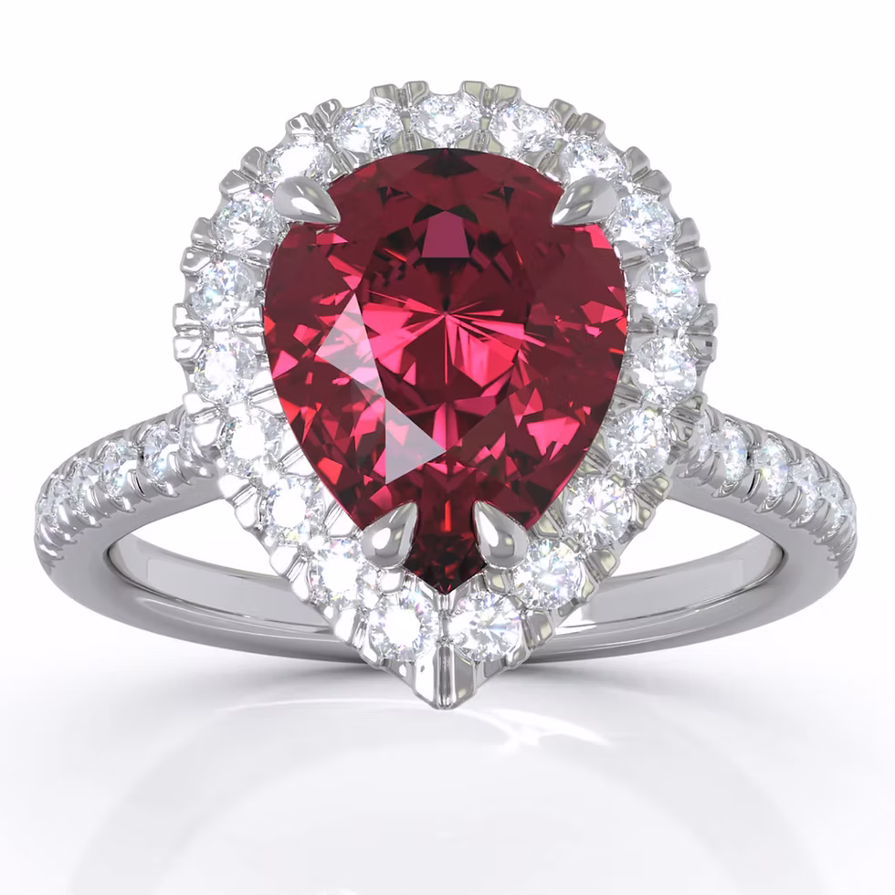 14K White Gold 9x7MM Ruby & Diamond Ring
